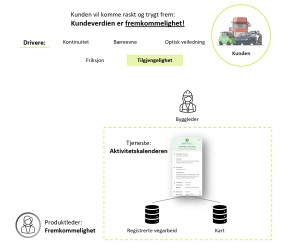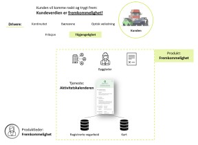 La oss se på et eksempel fra Statens vegvesen. Dette er en stor og kompleks organisasjon der mye av verdiskapning for kunden skjer gjennom fysiske komponenter og prosesser. Likevel er det teknologi som er driveren for å levere mer verdi til kunden. Vegvesenet er inne i en omstillingsprosess til en kundesentret produktorientering innenfor sentrale deler av organisasjonen.