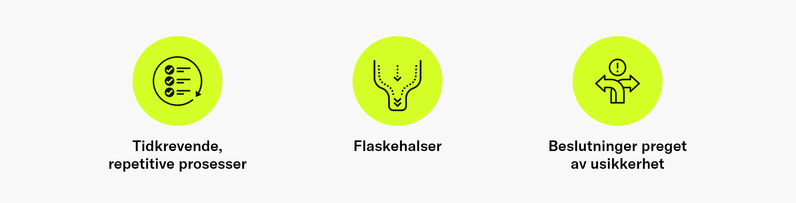 Det tredje punktet handler om beslutninger som er vanskelige fordi fremtiden er usikker. I datadrevne virksomheter kan dette gjelde etterspørselsprognoser, kapasitetsplanlegging, risikovurderinger, prioritering av tiltak og optimalisering av ressursbruk.