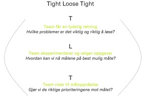 Et godt prinsipp for retningsgivende ledelse er tight-loose-tight (TLT). TLT innebærer å gi team en tydelig retning om hva de skal oppnå (tight), deretter frihet til å utforske og finne ut av hvordan de best kan løse problemene (loose), og til slutt en strukturert oppfølging for å sikre at målene nås (tight).
