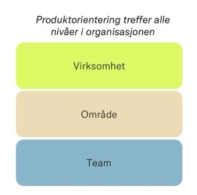 For å forstå hva som må til, må vi se på produktorientering som en modell som virker på tre nivåer, samtidig: Team, område og virksomhet.